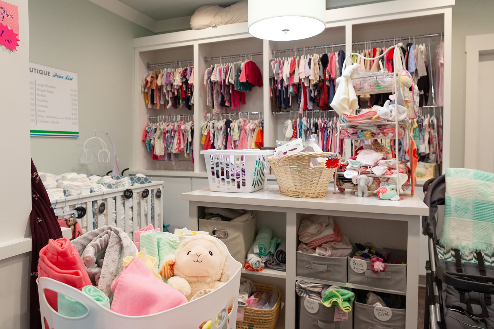 These boutiques provide: maternity and baby clothing, diapers, wipes, formula, bottles, blankets, books, toys, car seats, bassinets, breast pumps, monitors, diaper bags, bottle warmers, diaper pails, strollers and other newborn necessities like swaddles, pacifiers, thermometers, grooming kits, high chairs, and safe sleep supplies.